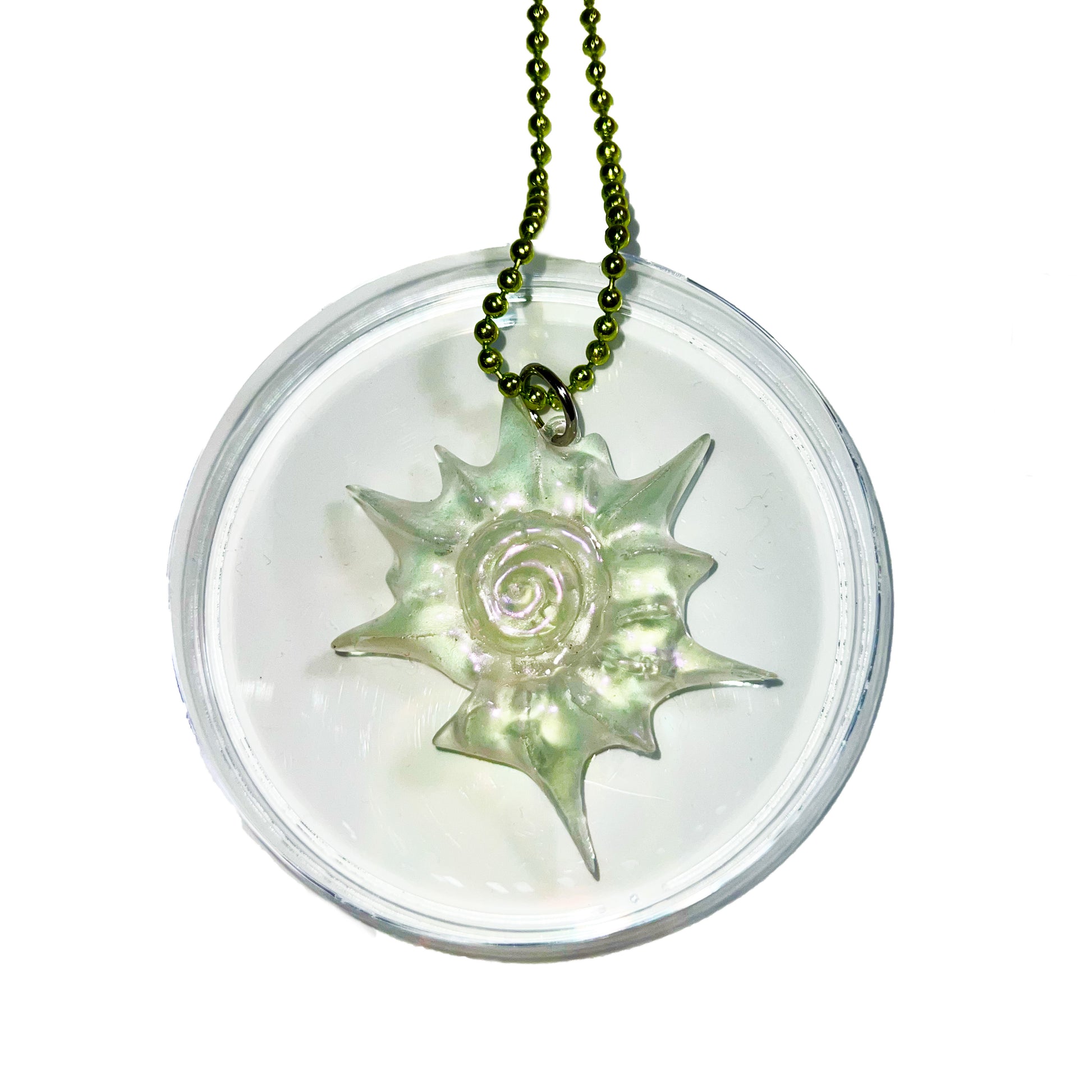 3-D PRINTED NAUTILUS NECKLACE CHARM ON GREEN CHAIN